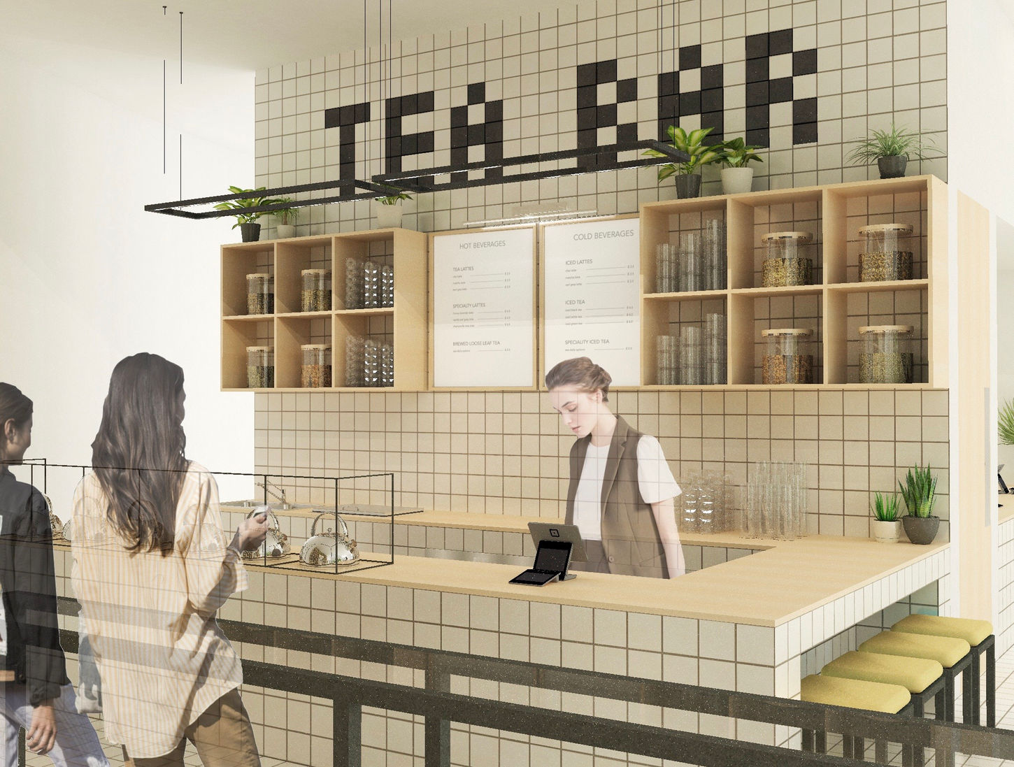 MOBA’s main gallery is a 5,000 square foot exhibition space intended to house large scale botanical installations. The modular floor cushions can be moved freely throughout the space and two large foldaway walls on either side of the gallery can be opened to expose the building to the natural landscape. TEA BAR, MOBA’s cafe offers a wide range of ethically sourced tea from around the world. Lattes and fresh brewed loose leaf tea are just some of the offerings. The gift shop which is adjacent to the cafe sells the premium loose leaf tea served at TEA BAR as well as posters and plants. The cafe’s seating wells ask visitors to share an intimate moment with the space by interacting with the ground plane in ways they otherwise would not.